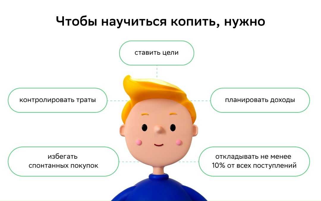 Ребенок должен научиться ставить финансовые цели, планировать расходы и откладывать деньги на будущее.