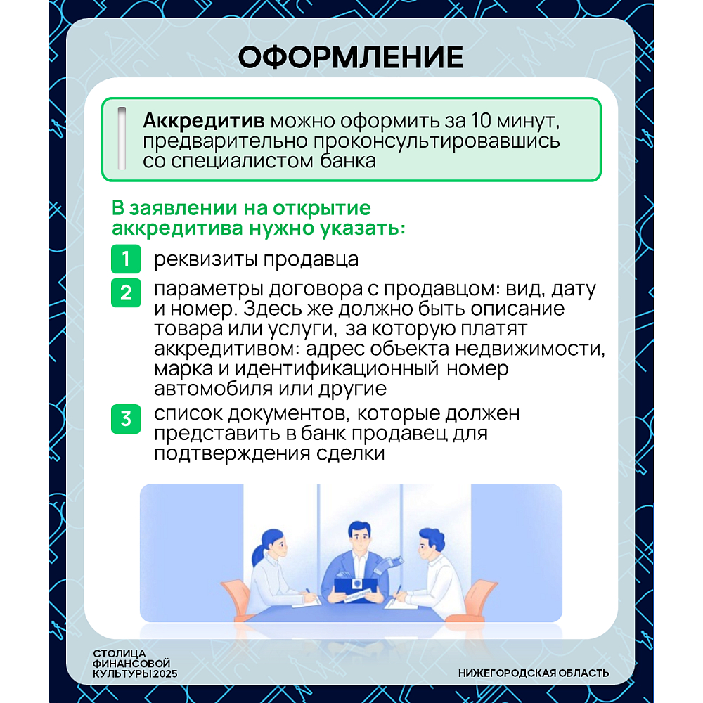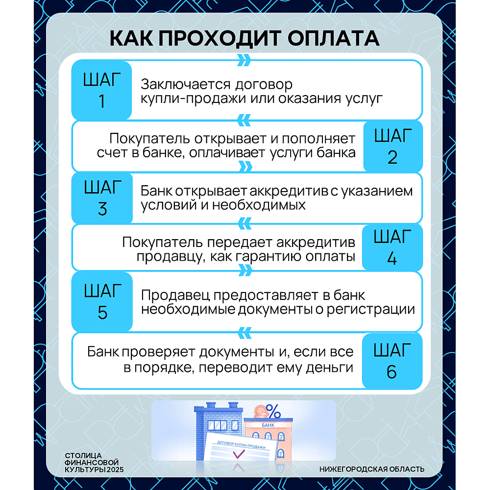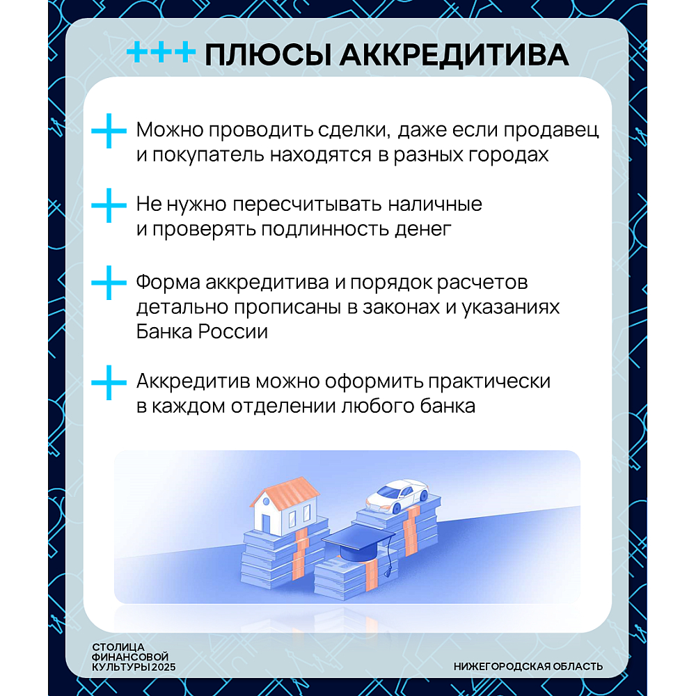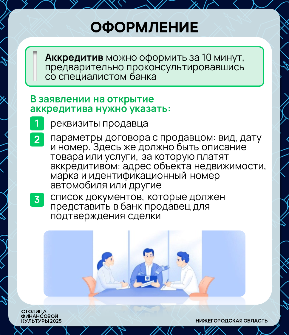 ⚙️ Покупаете квартиру, машину или дорогое оборудование? Не хотите переводить крупную сумму незнакомому человеку? Существует банковский инструмент, который защитит обе стороны сделки — это аккредитив