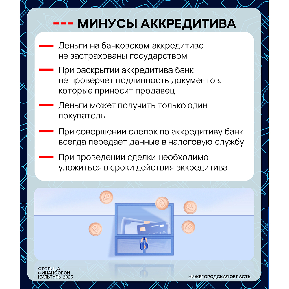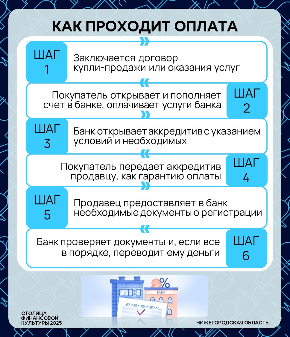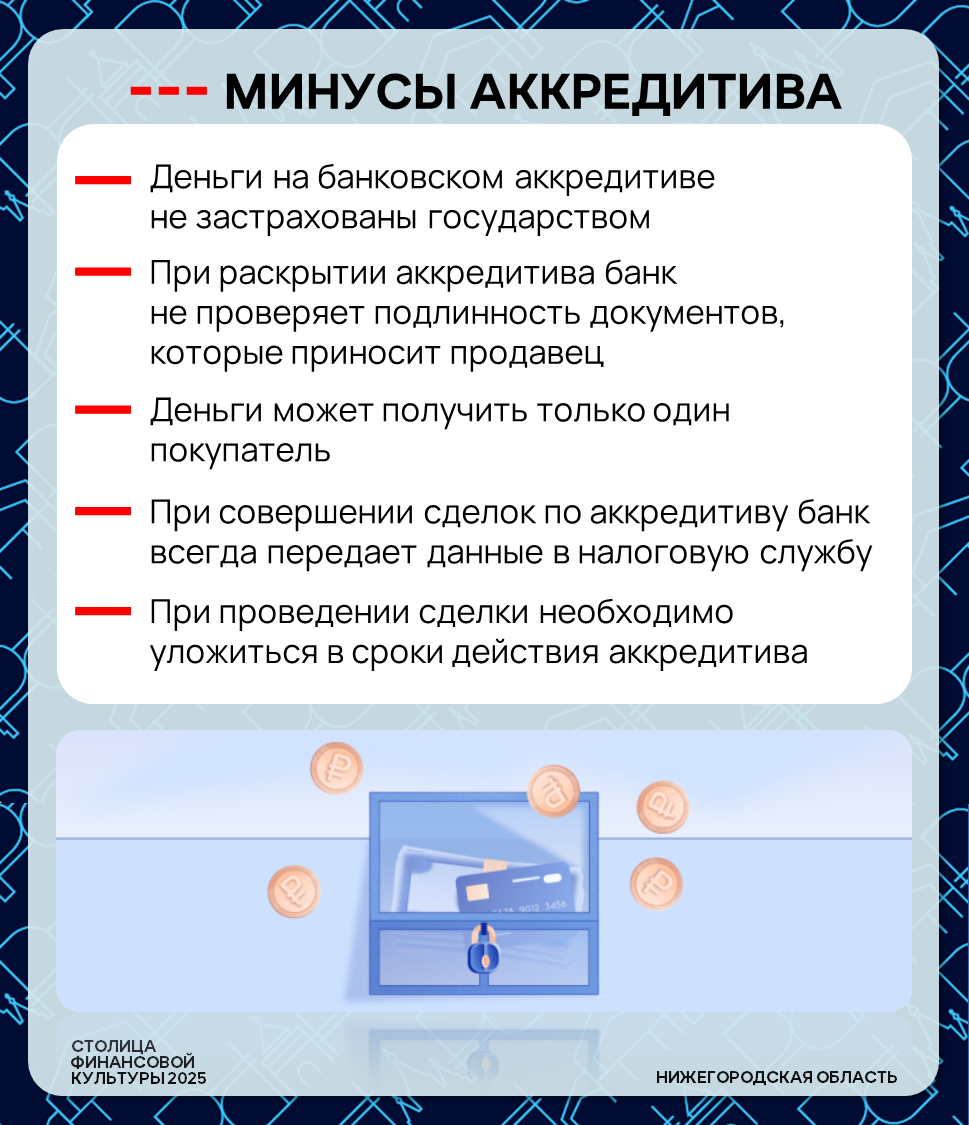 ➡️ В карточках подробнее рассматриваем, как работает аккредитив, в чем его плюсы и минусы, а также на что важно обратить внимание